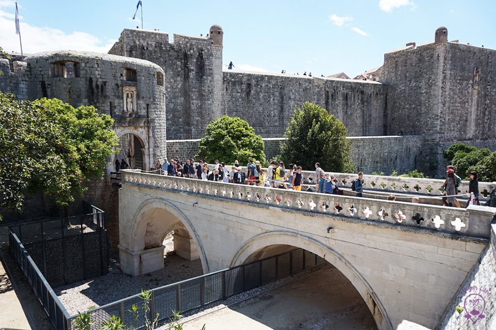 Entrada a la ciudad amurallada por la Puerta de Pile (1 en el mapa), construida en el siglo XIV. Es la única entrada a la ciudad, y en verano debido a la gran cantidad de cruceros, hay largas colas para entrar.