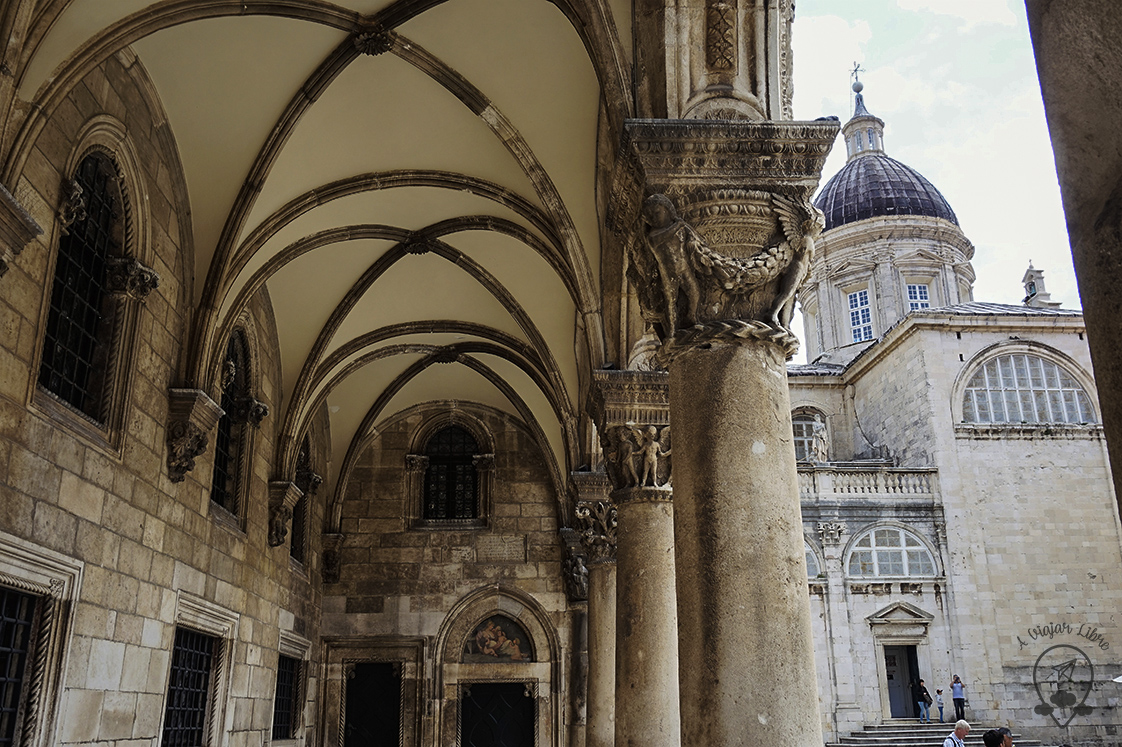 En la Plaza Luca nos encontramos rodeados de varios monumentos: el Palacio Sponza (Sponza Palace) (8 en el mapa)del siglo XVI con un bonito patio interior (que no te dejan pasar si no pagas la entrada). Tiene una bonita fachada con preciosas tallas de piedra y una columnata. El palacio ha servido para una variedad de funciones públicas, y llegó a ser un centro cultural en el siglo XVI ya que se estableció aquí una academia literaria.