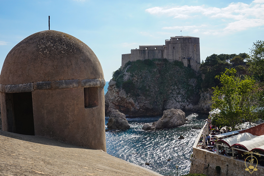 Si te duele pagar este importe, para que te escueza menos, también te diré que esta entrada (lo pone en letras muy pequeñas y no todo el mundo lo lee) incluye la visita, la fortaleza de Lovrijenac (33 en el mapa). Es el castillo situado fuera de las murallas, y mundialmente conocido por ser el castillo donde se ha grabado mayormente la serie de Juego de Tronos, de hecho hay una visita guiada sólo para recorrer los lugares emblemáticos de esta serie por toda la ciudad. También imprescindible de visitar con sus magníficas vistas a la muralla y casco histórico de Dubrovnik. Puedes visitar estos dos sitios en días diferentes con la misma entrada.